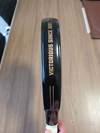 Racchetta rotonda di 365 gr., potente ma con ampio punto dolce, nucleo di media durezza, facce ruvide in carbonio 6K, bilanciamento medio. Ottime condizioni a parte qualche segno sulla testa. Bella, per appassionati.