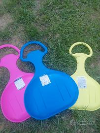 3 slittini neve due tiene fino a 70 kg.e uno fino a 60 kg in ottime condizioni vendo tutte e tre a 15 euro