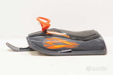 Vendo causa inutilizzo uno Slittino neve monoposto Stiga Snowrunner. Questo snowracer monoposto è ideale per bambini e ragazzi dai 6 anni in su, per prendere confidenza con le piste, non trascurando il divertimento in sicurezza. La scocca con confortevole sedile in polietilene nero con decoro fiammeggiante, è montata su telaio e ha uno sci centrale in polietilene grigio. La guida sicura è garantita dallo sterzo con volante di colore arancio e dai freni in acciaio posizionati sui due bandoni laterali. Condizioni: come nuovo, mai usato. Non ha più il suo imballaggio originale. Portata massima utente 100 kg.