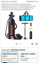 SMACO Bombola da Immersione di Respirazione Subacquea 1L Bombola da Sub può Essere Usato Come Bombola di Ricambio Adatto per l'intrattenimento Subacqueo/Pulizia della Barca S400 Bombola subacquea da 1L: offre circa 75 respiri a 200 bar, adatta a immersioni brevi (fino a 5 m per principianti, fino a 30 m come riserva). Leggera e portatile: pesa circa 2,5 kg. Ricarica in più modi: tramite adattatore (8–10 sec), pompa elettrica (12–15 min) o manuale (30–35 min). Sicura e resistente: supporta fino a 3000 PSI, con rivestimento anticorrosione e sistemi di sicurezza integrati. Dotazione completa: include bombola, pompa, adattatore, occhiali e custodia. Avvertenze: non immergersi da soli e non superare i 30 m. VENDO PER NON UTILIZZO ‼️SENZA MASCHERA E POMPETTA‼️ NO PERDITEMPO