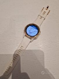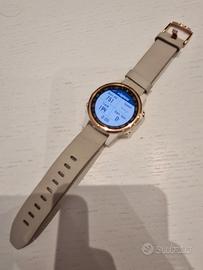 Usato pochissimo. White Rose Gold con due cinturini: pelle beige e silicone bianco, entrambi ad attacco rapido senza necessità strumenti.