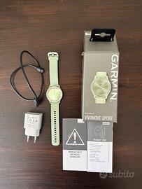 Ricevuto come regalo non gradito e mai utilizzato vendo Garmin Vivomove Sport con cassa e cinturino in silicone color menta con dettagli argento