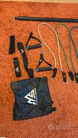 Vendo kit completo di elastici con barra SmartWorkout Pro, ideale per allenarsi a casa in modo serio e versatile. Permette di eseguire esercizi per tutto il corpo: squat, stacchi, chest press, rematore, shoulder press, curl, estensioni, lavoro per glutei e molto altro.