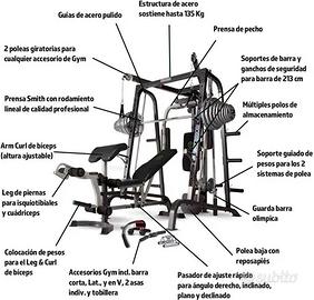 Marcy Deluxe MD9010G offre ampie possibilità di esercizi grazie alle due pulegge alte incrociate con movimento indipendente, il chest press per pettorali, la panca scott per bicipiti regolabile e smontabile la panca con schienale regolabile con varie angolazioni, un leg developer con doppia funzione. Inoltre, la panca si può spostare e permette lo svolgimento di molti esercizi per rendere gli allenamenti più completi. È dotata, inoltre, di un bilanciere Smith, oltre agli accessori più comunemente utilizzati in palestra, tra cui una Lat Bar, corde e maniglie per lo sviluppo di bicipiti, tricipiti e muscoli dorsali.