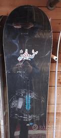 tavola da snowboard Burton Barracuda 161cm del 2012 con segni di vita vissuta, ma integra e perfettamente funzionante: i graffi sul top sono vistosi (effetto del nero lucido) ma non profondi, lamine intatte, soletta con segni già riparati