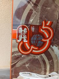tavola da snowboardBurton Jussi.Si tratta di un modellopro modeldedicato a Jussi Oksanen.È progettata per uno stileall-mountain freestyle.Il design presenta una grafica specifica, nota per l'orso sulla soletta in alcune versioni.La tavola si distingue per un flex direzionale rigido e una forma Il modello visibile sembra essere della marca Burton, nello specifico la linea "Mission".Colorazione mimetica camouflage) su fondo bianco.