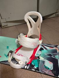 Attacchi Union Milan da donna inclusi, freestyle/all‑mountain, comodissimi e giocosi, pensati per trasformare tutta la montagna in un park.