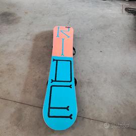 vendo snowboard Ride usato pochissimo causa infortunio. fondo perfetto.gli attacchi sono Drake, praticamente nuovi . adatto a persone alte da 1,55 a 1,75 . con anche il borsone .