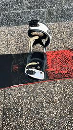 Snowboard Drake League, 2017 model, All mountain, Beginner/Intermediate, Flex 3/10, Continuum Rocker, Cores Super Pop, Bases Ext 2000, Directional Twin, Biax Reinforcement, Prezzo medio 300€. Attacchi Drake King 2017, Flex 4/10, Baseplate, Highback spoiler, Prezzo medio 200€. Ottima All mountain per Beginner/Intermedi, il rocker le permette di muoversi in maniera fluida un po' su ogni tipo di neve, senza dare grossi problemi nel Freeride, necessaria poca manutenzione per la soletta Ext 2000, usata per qualche anno con frequenza media.