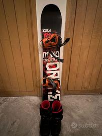 Vendesi snowboard 1,55 cm completo di attacchi e scarponi mis 44,5 (29 cm) La tavola e hai scarponi sono in buone condizioni