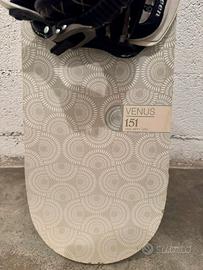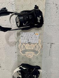 Vendo Snowboard completo: tavola Flow Venus 151 + attacchi drake queen taglia M. Tavola in buone condizioni con segni di usura classici dovute agli urti sulle piste e attacchi in condizioni ottime.