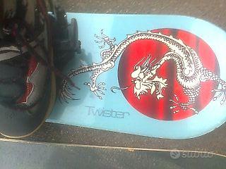 Snowboard Maffia Twister Dragon lunghezza mt.1,4 larghezza 26 cm. completo di attacchi Fast Pro + scarponi taglia 6/7. Tutto in ottime condizioni, si ritira in loco.