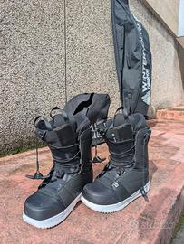 Scarponi: il Faction è uno scarpone entry/mid-range di Salomon. È molto interessante per uno snowboarder che cerca di progredire ma vuole mantenere il massimo comfort. È dotato di sistema di allaccio rapido, di una fodera Universal con schiuma Ultralon e schiuma Custom Fit che offre una calzata confortevole fin dall'inizio, nonché di una soletta Imprint e di una suola D-Light EVA per il comfort e l'ammortizzazione.
