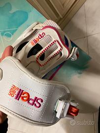 Usato solo per due uscite. Snowboard Salomon Lotus da 146cm, ideato per ragazze e donne che volgiono iniziare ma anche chi sa gia surfare e vuole faroo senza stress. Caratteristiche Principali Ideale per: Principianti e intermedi che desiderano una tavola versatile per all-mountain e freestyle. Profilo: Presenta un profilo Flat Out Camber, che combina una sezione piatta tra gli attacchi per stabilità e reattività, con un leggero rocker su punta e coda per facilitare le curve ed evitare "spigolate" accidentali (lamine BiteFree). Flex: Ha un flex morbido (rating 4/10), che la rende facile da manovrare e indulgente, ideale per progredire con sicurezza. Forma: Directional Twin, che la rende adatta sia per la discesa in avanti che in switch (con l'altra gamba davanti). Anima: Realizzata con anima in legno di pioppo (Aspen Core) con rinforzi in betulla nelle aree degli inserti per maggiore resistenza e leggerezza. Compreso di attacchi Salomon Spell.