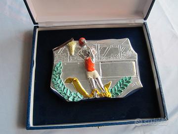 Soggetto Basket realizzato in resina argentata con smalti, confezionato in astuccio blu cm 25x21 Possibilità di richiedere una targhetta con dedica