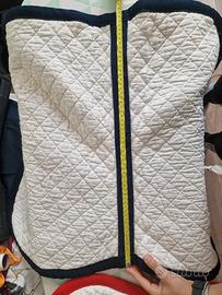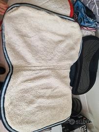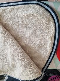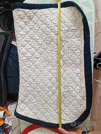 Vendo sottosella con interno in lana per garantire il massimo comfort alla schiena del cavallo. Usato ma in ottime condizioni; non presenta scuciture ma ha qualche piccola ombra leggermente percettibile. Allego foto con misure lunghezza x larghezza. Non hanno marca in quanto ho scelto i materiali e colori e fatti realizzare da sarta.