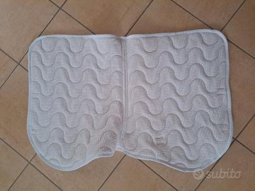 Vendo sottosella da salto, taglia cavallo, colore bianco con bordo blu - verde scuro, marca Equiline. Articolo poco utilizzato, come nuovo e tessuto in perfette condizioni.
