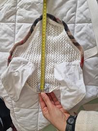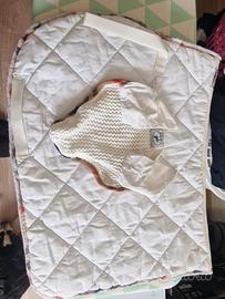 Vendo sottosella + cuffietta con bordini simil "burberry" in pile, ben imbottito. Usato ma in buone condizioni. Allego foto con misure lunghezza x larghezza del sottosella e della cuffietta.