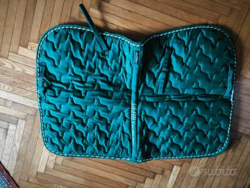 Vendo set da gara in ottime condizioni, usati pochissimo, colore verde scuro con bordo in corda in diverse sfumature di verde. Misura cavallo. prezzo non trattabile.
