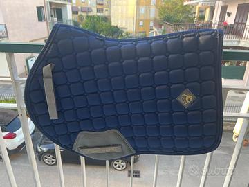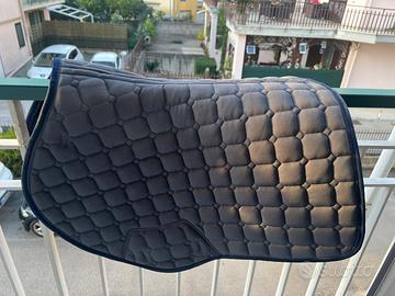 Sottosella equitazione da salto ostacoli blu con dettagli grigi. Marca: TOSONI SELLERIA. E' stato solo provato, quindi condizioni pari al nuovo.