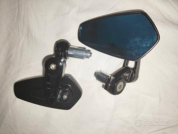 2 Specchietti retrovisori per bici da montare sul manubrio da 17 a 22 mm, compatibili con installazione sia laterale che perpendicolare mediante anello, comprese chiavi a brugola. Scocca metallica resistente in lega di zinco, specchio antiriflesso e rotazione possibile a 360°