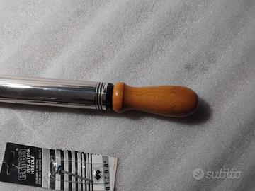 "SPEDIZIONE TRACCIABILE INCLUSA" : POMPA per gonfiaggio palloni, in acciaio cromato e manico in legno, lunghezza completa 35 cm, diametro 28 mm, inclusi 3 aghi. _Fabio - 3334231359 - anche WhatsApp. e mail.