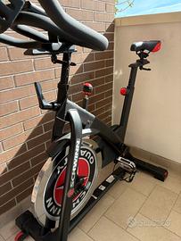 Ampia console LCD equipaggiata per monitorare la frequenza cardiaca e le metriche standard: tempo, distanza, calorie, RPM.