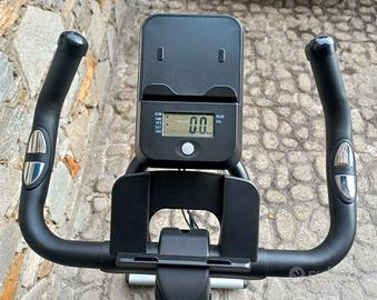 Cyclette professionale Labgrey modello L3, colore grigio. Usata pochissimo, come nuova. – volano 15 kg – resistenza magnetica – trasmissione a cinghia – manubrio e sella regolabili per persone da 155 a 190 cm – sella in gel – ruotine anteriori per spostamento – portaborraccia – pedali con gabbietta e cinturini – schermo LCD con visualizzazione velocità, tempo, distanza, calorie, pulsazioni Spedisco a carico acquirente ma consegna a mano preferita