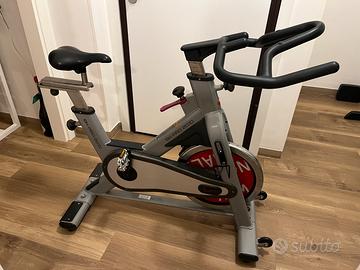 Vendo per inutilizzo Spin Bike professionale in condizioni ottimali, acquistata tramite una palestra, molto solida e silenziosa, totalmente ergonomica grazie alle molteplici regolazioni di sella e manubrio, la resistenza è regolabile manualmente tramite un pomello, freno meccanico a frizione, porta borraccia laterale, possibilità di montare qualsiasi tipo di pedale