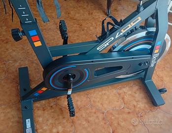 Vendo spin bike BCUBE SP400 in perfette condizioni (usata al massimo 5 volte), ideale per allenamento cardio e indoor cycling a casa. Caratteristiche: • volano da 18 kg per pedalata fluida • display LED con tempo, velocità, distanza e calorie • sensori cardio sul manubrio • sella regolabile in altezza e profondità • manubrio regolabile • pedali con gabbiette • struttura robusta (peso massimo utente 120 kg) La bici è stabile e silenziosa, perfetta per allenamenti domestici. Prezzo: 150 € leggermente trattabili. Solo ritiro a mano presso il mio domicilio a Dairago (MI).