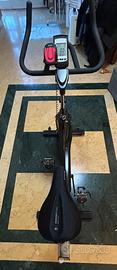 Spinning onetwofit volano da 25 kg freno magnetico NON cuscinetti , piccolo computer. Installati pedali a sgancio rapido per scarpe da bici e non. Usata poco. Perfetta sempre tenuta in camera. Larghezza piede 55 cm lunghezza da piede a piede 105 cm. Sella regolabile in altezza e in profondità, manubrio regolabile in altezza. Utilizzabile per uomo e donna da altezza 150 cm a 190 cm Prezzo € 89,00. NON SPEDISCO