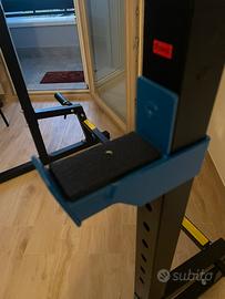 Struttura stabile e resistente con predisposizione per essere ancorata al pavimento, ideale per allenamenti completi in casa: squat, panca piana/inclinata, trazioni e stacchi.