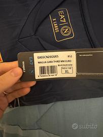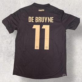 Maglia ufficiale 2025/2026 del SSC Napoli, versione Champions League — colore blu / navy (terza maglia/edizione speciale), con nome “De Bruyne” + numero 11 sul retro.