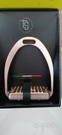 bellissime staffe da dressage della tech stirrups nuove mai usate alluminio colore oro rosa fantastiche !!