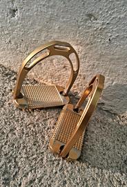 Staffe per Equitazione salto ostacoli marca WildKart professionali usate ma in buonissime condizioni. Solo sporche ma grip ancora molto buono per usarlo. Colore Oro.