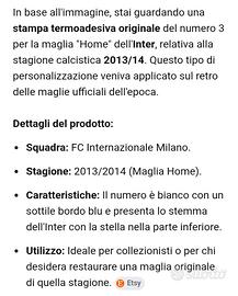 Vendo stampa termoadesiva originale dell'Inter del 2013/14 , ci sono tutti i numeri sia in lettere grandi che piccole ce anche qualche lettera e nome , per info in privato