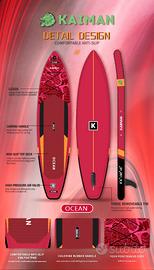 Tipo Touring misure 11'6''x32''x6'' (cm 350x81x15), Volume 295 LT, MSL Dual Layer , Fusion, Pad in EVA da 5 mm antiscivolo, , Dropstitch alta densità TPU Drop Stitch, stampa laser su pvc, 4 Drings per attacco sediolino e attacco action cam su nose, maniglia trasporto su nose e tail Us Fin removibile, pagaia in alluminio scomponibile, Leash, Kit di riparazione, Pompa doppia azione, + simpatico omaggio (porta cellulare stagno)