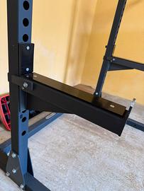 Standing rack pro sidea (half rack) in ottime condizioni molto stabile senza fissaggio a terra (unico “difetto superfiacle” presente quelche macchiolina di ruggine sopra la magnesite nella sbarra pull up) usato in home gym per circa due mesi In più safety spotter Dimensioni : 1200x1110x2305 mm Foro regolazione piu alto 1770 mm Foro regolazione piu basso 640 mm Pull up bars 2225 mm Carico massimo 380 kg Viste le dimensioni e il peso preferisco il ritiro a mano (posso consegnare nelle zone limitrofe dopo accordo)