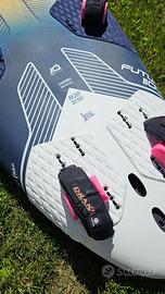 Vendo Starboard Futura 110lt wood. Tavola tenuta perfettamente e con cura, ha solo un paio di punti nella parte sotto e nella scassa del piede d'albero dove è venuta via leggermente la vernice. Mai bevuto e mai riparata, usata solo al lago. Pinna originale da 38 compresa. Disponibili pinne carbon da 36 e 36,5 vendute a parte. Visionabile a Torbole, Pra, Desenzano e Malcesine.