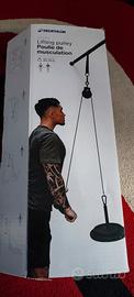 stazione carrucola con barra per trazioni della Decathlon,si può caricare fino a 100 chili con scatola