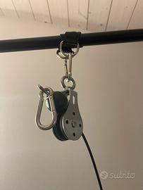 Stazione a carrucola con corda e barra a V per tricipiti e bicipiti.