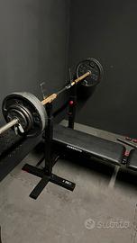 Vendo HOMCOM Stazione Fitness con Pesi da 45kg in Acciaio, 170x104x205cm, Nero e panca piana e inclinabile 45° con rack appoggio bilanciere, incluso bilanciere e due manubri con dischi (2x10kg, 4x5Kg)