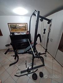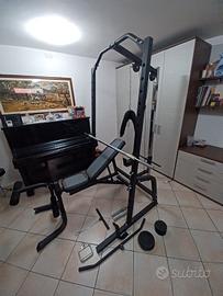 Causa inutilizzo (mio figlio che la usava si è trasferito per lavoro), vendo stazione fitness SPORTNOW, composta da multifunctional cage e panca regolabile. Porta bilanciere regolabile in altezza su 15 livelli, panca per pesi con 6 diverse inclinazioni, sistema a puleggia lat/pulldown machine. La stazione consente di lavorare su braccia, gambe, spalle, schiena e pettorali. Telaio in acciaio con rivestimento a polvere. Inclusi anche gli accessori visibili in foto. Prodotto originale.