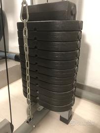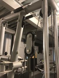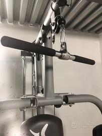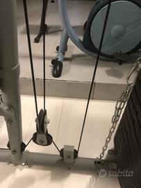 Stazione multifunzione usata poco, Kg 60 totali , consente di eseguire diversi esercizi per pettorali, dorsali, braccia, spalle e gambe, completa di sbarra presa stretta e sbarra presa larga. INGOMBRI: H Mt 2,05 - P Mt 1,65 - L Mt 0,95 . Prezzo trattabile