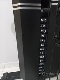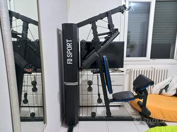 Stazione multifunzione fd sport con pacco pesi da 15 piastre dal totale di 105 kg. Si possono svolgere molto esercizi: chest press, lat tower, leg extension, leg curl, butterfly, arm curl, addominali, trazioni, pulley. Schienale e seduta imbottiti anche il cuscino per l'arm curl è imbottito e può essere rimosso. La stazione multifunzione ha un peso totale di 141 kg e può sostenere un utente dal peso massimo di 150 kg . Completo di manuale di montaggio e istruzioni. Smontaggio e consegna a carico dell'acquirente. il cuscino presenta alcuni piccoli segni di usura.