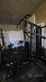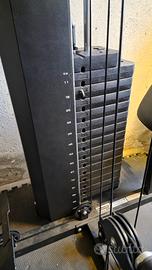 Vendo per inutilizzo Toorx MSX 90 ottimo stato e completo di tutti gli accessori. Caratteristiche Pacco pesi 102 kg con carter di protezione integrale Regolazione leg press verticale su 3 livelli e orizzontale su 3 livelli Regolazione braccia con cavo libero: 6 livelli Sistema di carrucole e pulegge con cuscinetti a sfera Doppia funzione butterfly: butterfly e vogata Sistema di cavi in acciaio intrecciati rivestiti in poliuretano. Dotazione: barra tricipiti, corda doppia per tricipiti, 2 maniglie e cavigliera per trazioni incluse Funzioni: triceps, abdominal crunch, leg extension, high pull AB crunch, tricep push-down, lat pull down, biceps, pectoral fly, seated press bar row, seated pulley row, front press, leg kick back, seated shoulder press, upright row, standing leg curl, arm curl, lex press regolabile. La stazione multifunzione Toorx MSX-90 ha dimensioni d'ingombro di circa 184 lunghezza x150 larghezza (con i bracci aperti) x208 altezza smontaggio e trasporto a carico dell'acquirente. attualmente si trova in un box al piano terra quindi facile da caricare. no perditempo grazie
