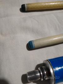 stecca da biliardo DOUBLEL tre pezzi con due puntali e fodero ,in ottime,condizioni ha un'ottima steccata. ho verniciato un pezzo del manico di azzurro.