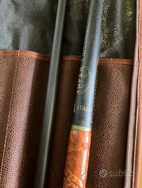 Stecca LM Italia - Made in Italy - super carbonio anno 2000, 1.43m in ottimo stato con manico in radica. Usata ma in buono stato. Prezzo comprensivo di custodia in pelle.