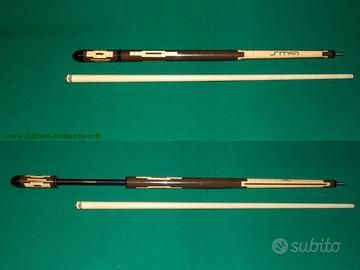Stecca da biliardo Longoni Salvatore Mannone SM9. Serie 5 stelle. Qualità professionale. Attacco VP2. Progettata per il biliardo a cinque birilli, ma adatta anche ad altri giochi come carambola/biliardo francese. Il calcio si apre per consentire la completa rimozione dell'asta di bilanciamento. Il calcio si svita per estendere la stecca di 18 cm. Stecca da biliardo di alta qualità e/o da collezione. Anno 2009. Stecca realizzata in collaborazione con Salvatore Mannone, rinomato giocatore di biliardo. Asta in acero riccio con anima in carpino per un peso ridotto e la massima potenza. Intarsi in wengé e acero realizzati con la tecnica dell'intarsio francese. Sistema telescopico con prolunga Xtender. Asta VP2, piastra di base sagomata e sistema di bilanciamento Vibraless. Approvata FIBIS. Lunghezza: 141,5 cm. Diametro della punta: 12 mm. Peso totale: 660 g / 23,3 oz. Contrappeso: 70 g (colore oro). Peso della parte filettata dell'asta: 100 g. Lunghezza dell'asta: 68,5 cm. Peso: 550 g. Lunghezza della freccia: 73 cm. Peso: 110 g / 3,9 oz. Venduta con custodia nuova. Mi trovo in Francia, le spese di spedizione saranno a carico del mittente.
