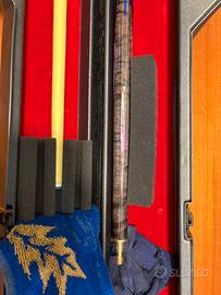 L'attrezzatura è in ottime condizioni generali. La stecca è dritta, i giunti sono perfetti e la custodia presenta solo normali segni di usura esterni che non ne compromettono la funzionalità.